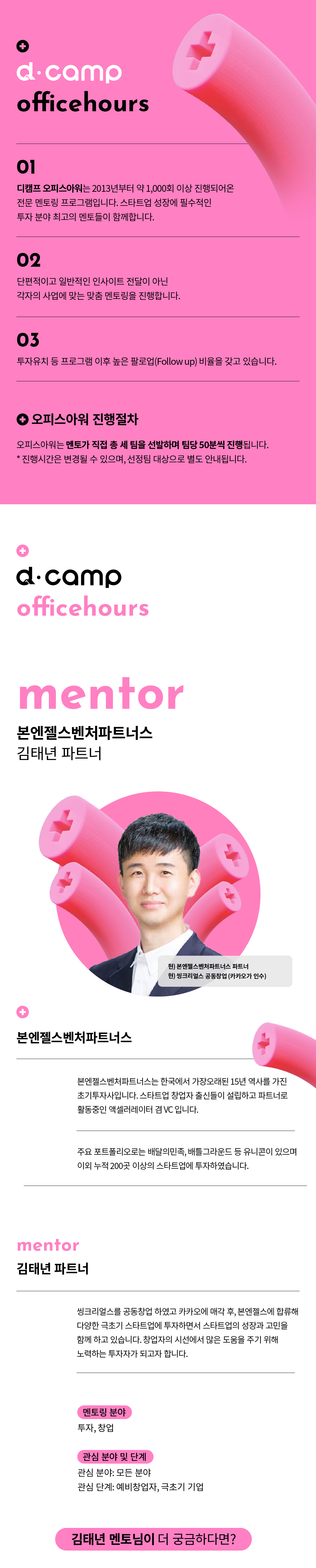 [11/27(수)│선릉] d·camp officehours with 본엔젤스벤처파트너스 김태년 파트너