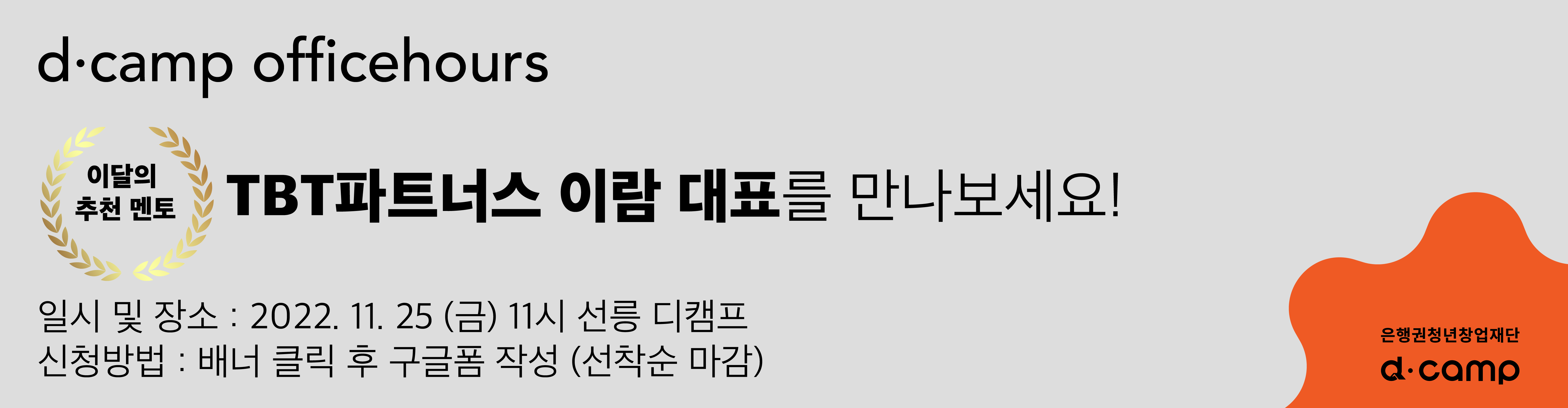 [11/22(화)│선릉] ★날짜변경★ d·camp officehours with 하나벤처스 김동환 대표